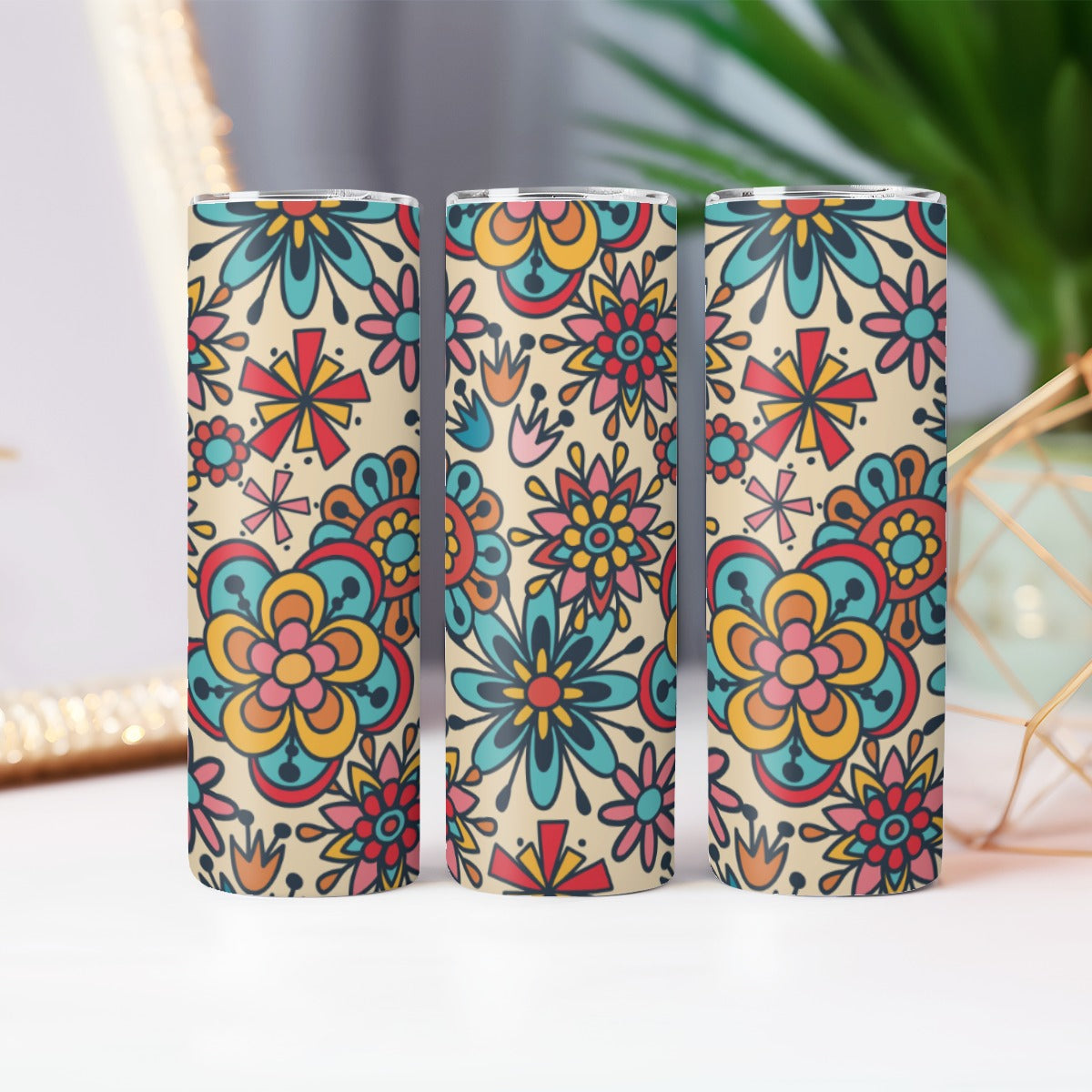 Colorful Boho Flower Garden Pattern - Custom 20OZ Straight Cup With Sliding Lid