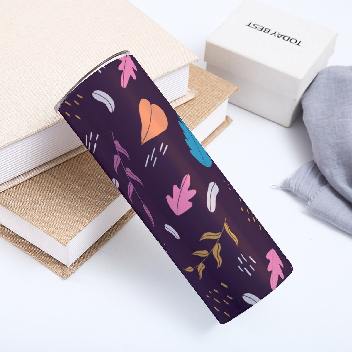 Dark Tropical Leaves Pattern - Custom 20OZ Straight Cup With Sliding Lid