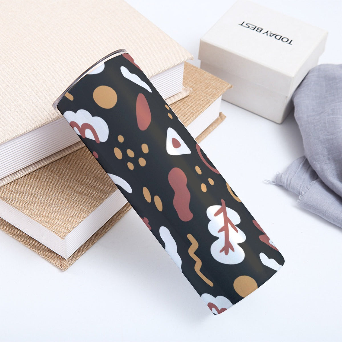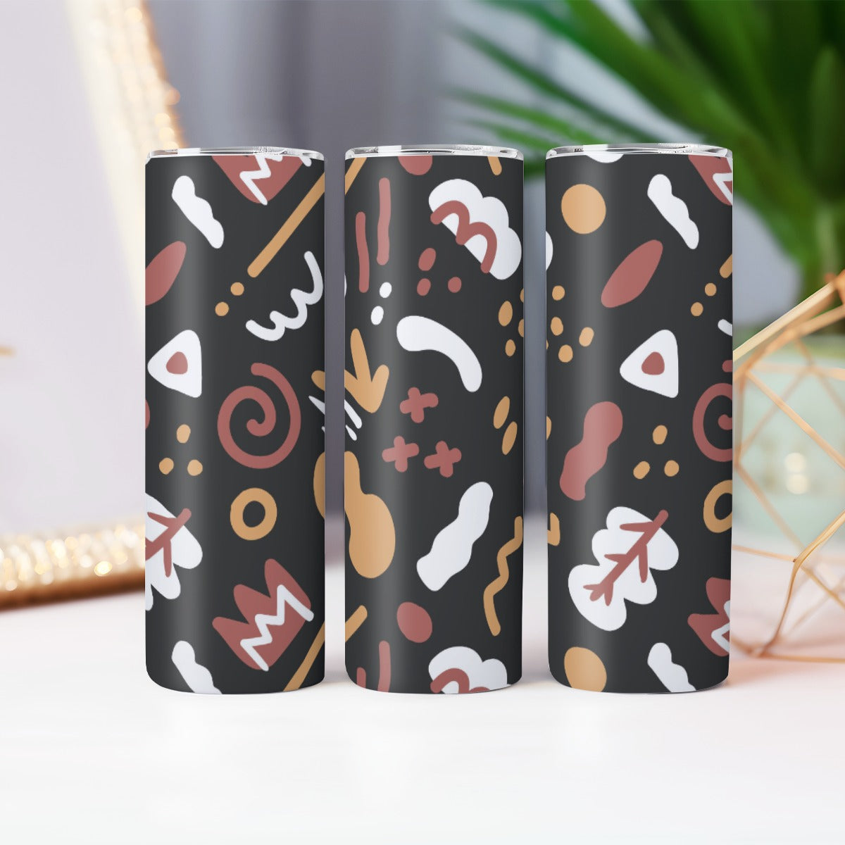 Earthy Tribal Symbols Pattern - Custom 20OZ Straight Cup With Sliding Lid