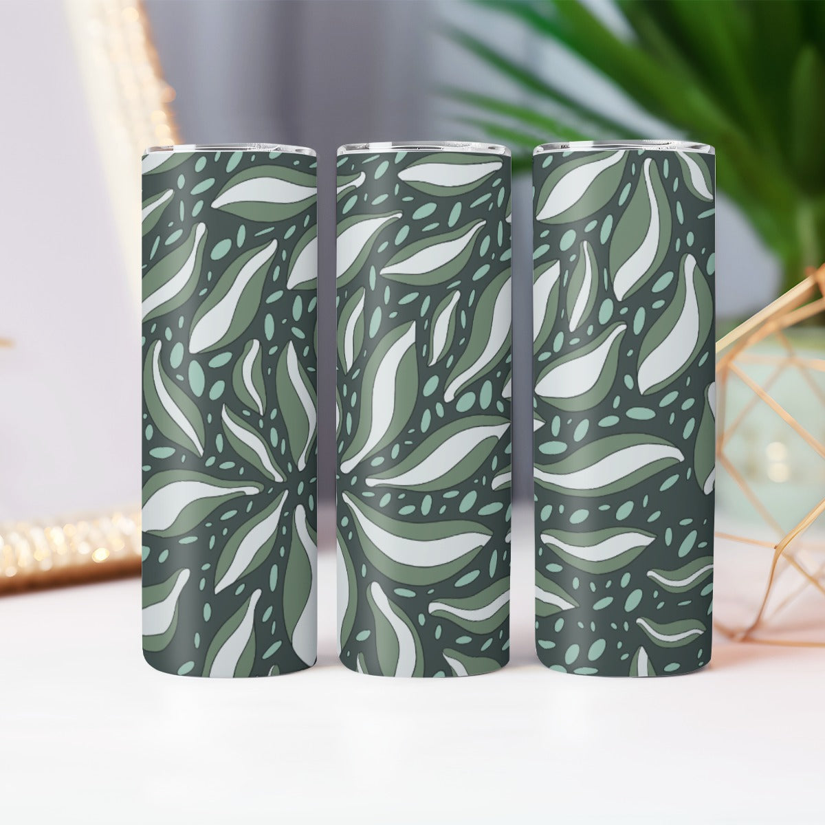 Green Tropical Leaf Pattern - Custom 20OZ Straight Cup With Sliding Lid