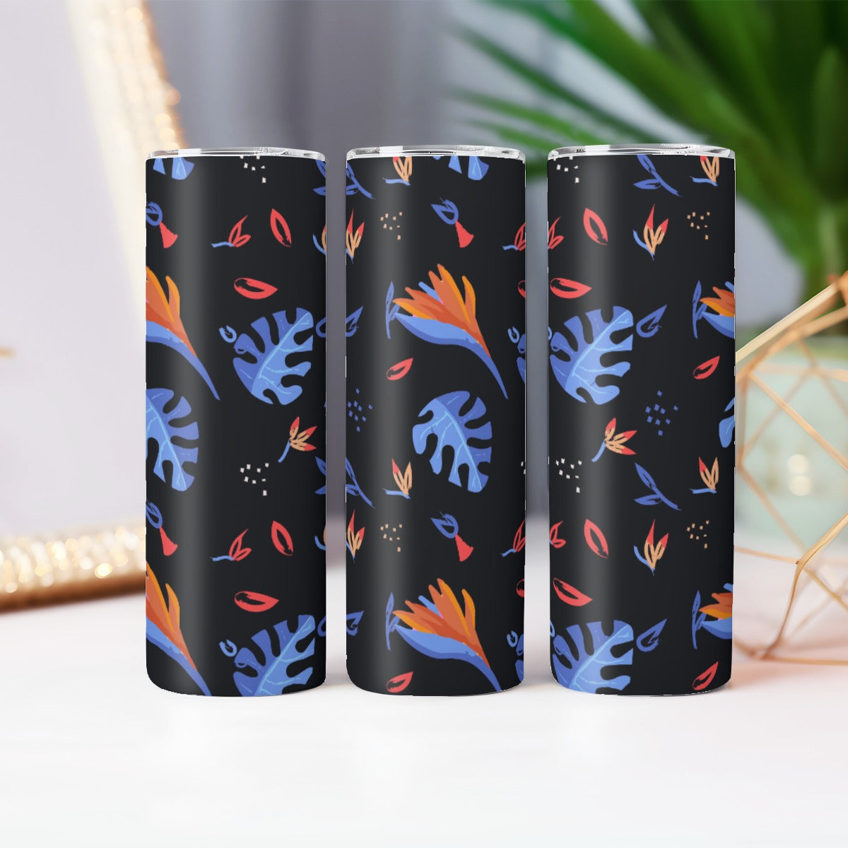 Midnight Garden Floating Leaves Pattern - Custom 20OZ Straight Cup With Sliding Lid