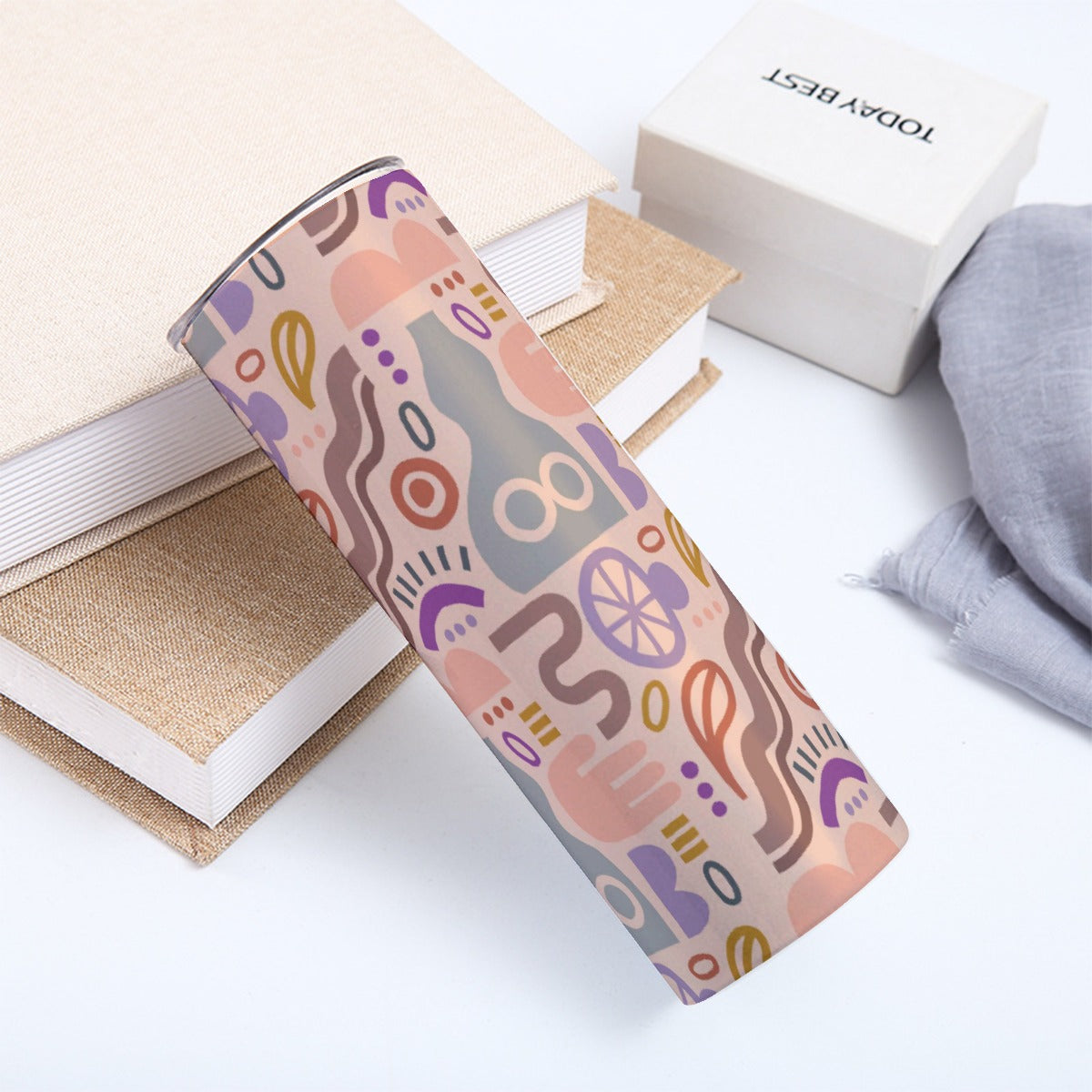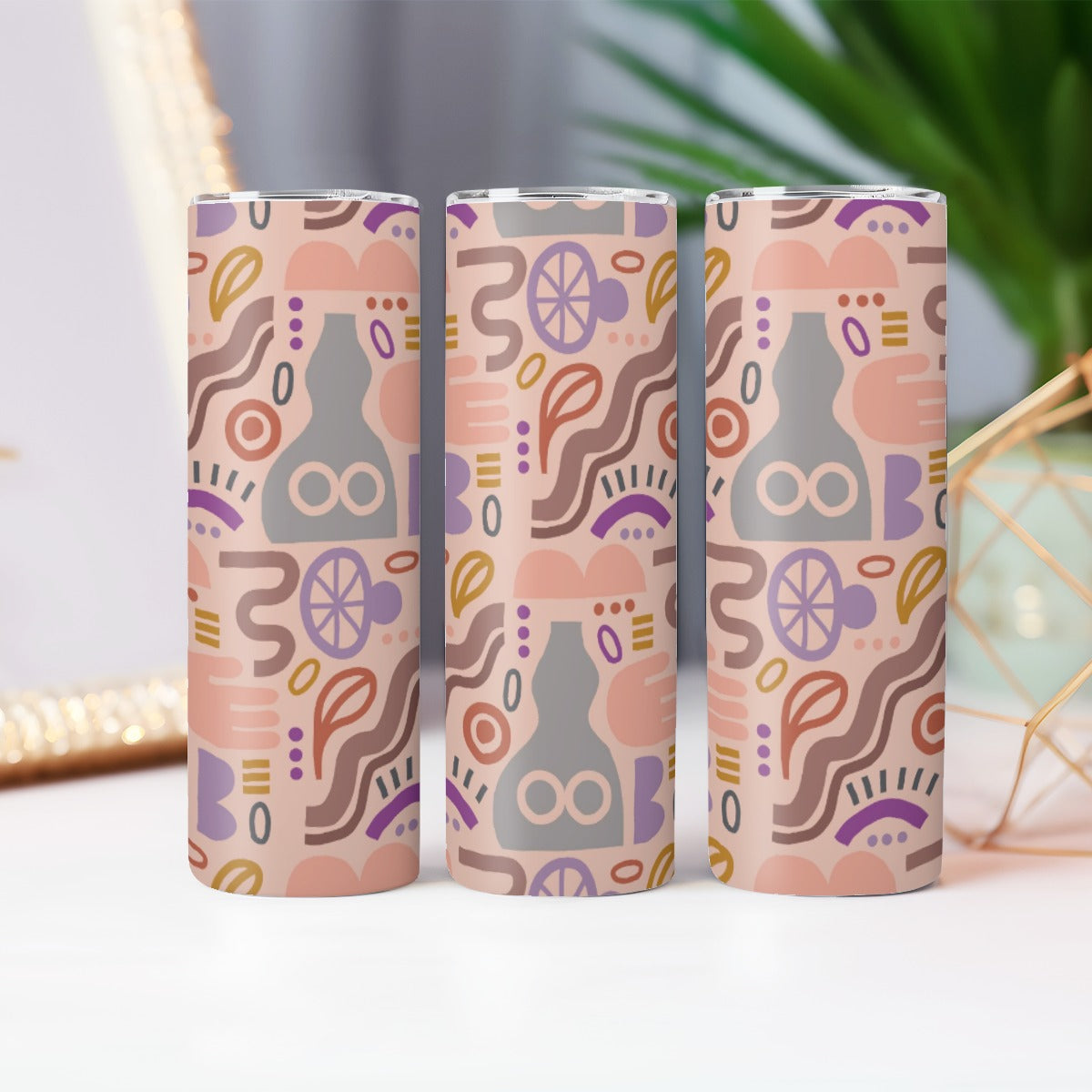 Muted Tones Abstract Pottery - Custom 20OZ Straight Cup With Sliding Lid