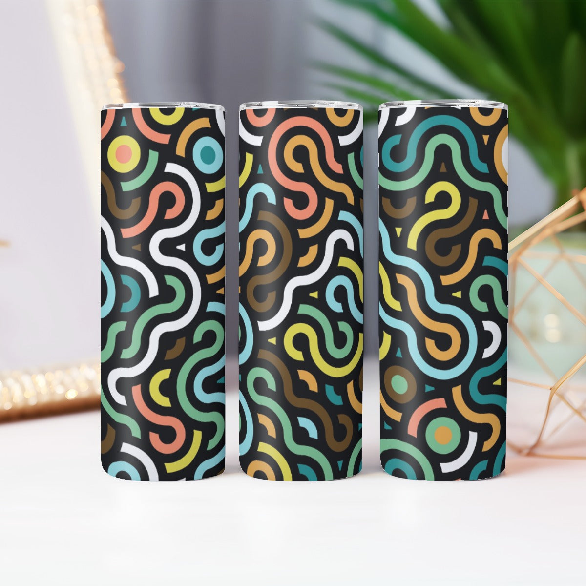 Retro Squiggles and Circles Pattern - Custom 20OZ Straight Cup With Sliding Lid