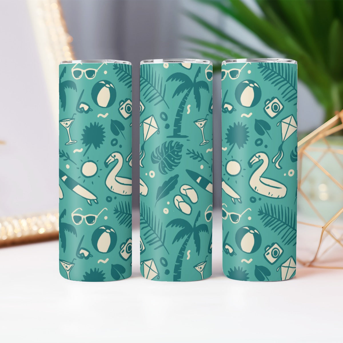 Teal Summer Vacation Pattern - Custom 20OZ Straight Cup With Sliding Lid
