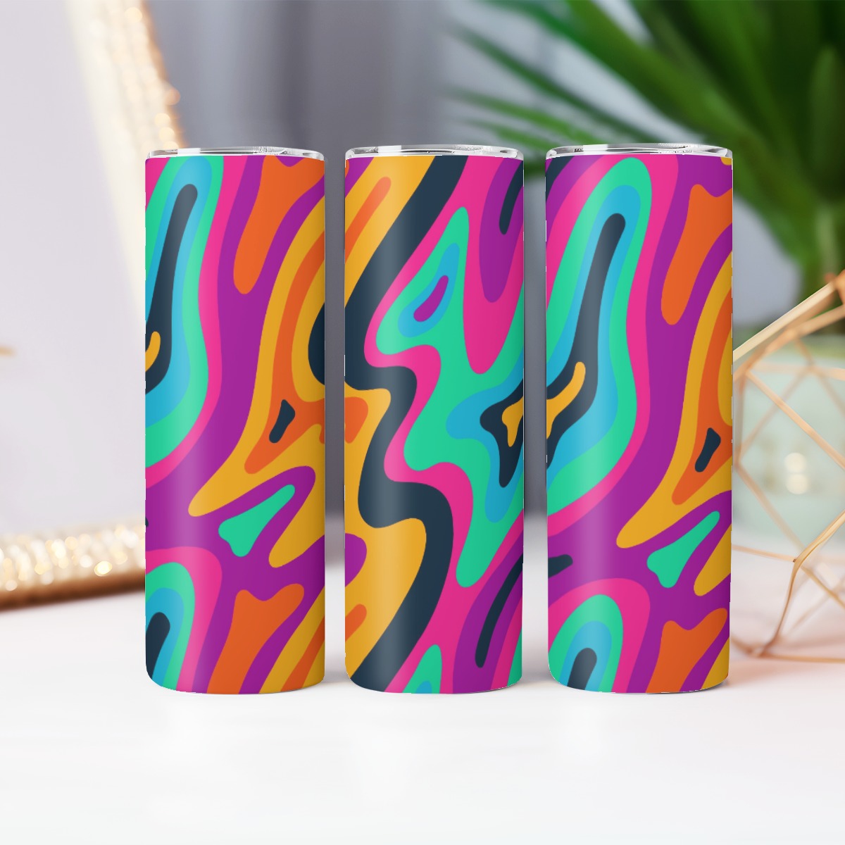 Vibrant Liquid Marble Swirl Pattern - Custom 20OZ Straight Cup With Sliding Lid